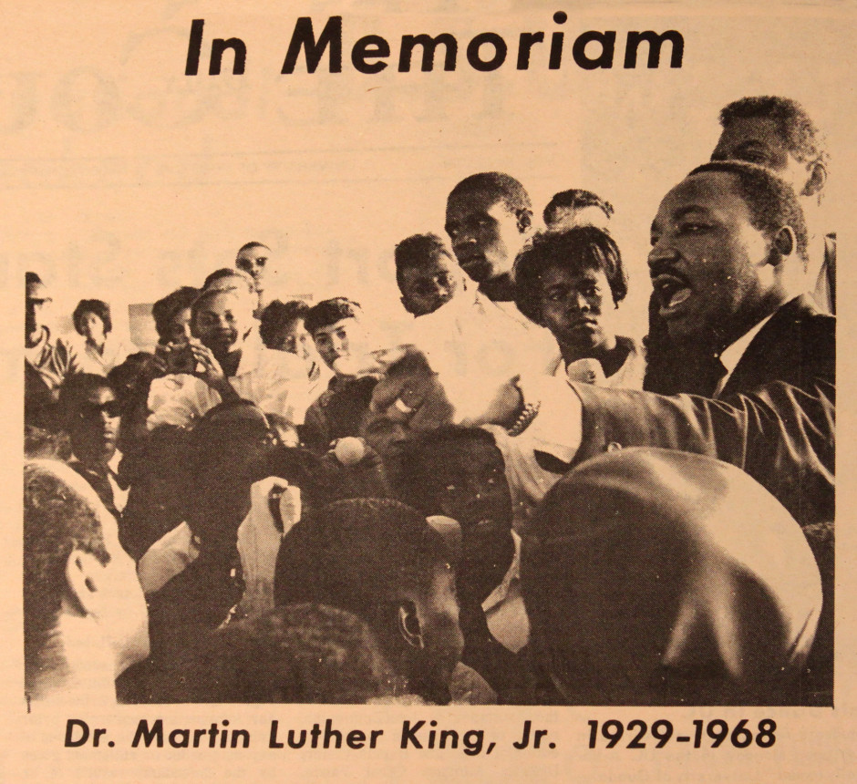 King died on April 4, 1968, and the April 10, 1968 issue of The Daily Cougar devoted a full page in memoriam. The page had two poems by Tim Fleck and Tom MacMorran Jr., as well as a letter of condolence from then-Student Body President Richard G. Poston to Coretta Scott King. Alongside a biography of King’s life was an editorial saying that, though white Americans may mourn King, they do not understand the plight of African-Americans.
