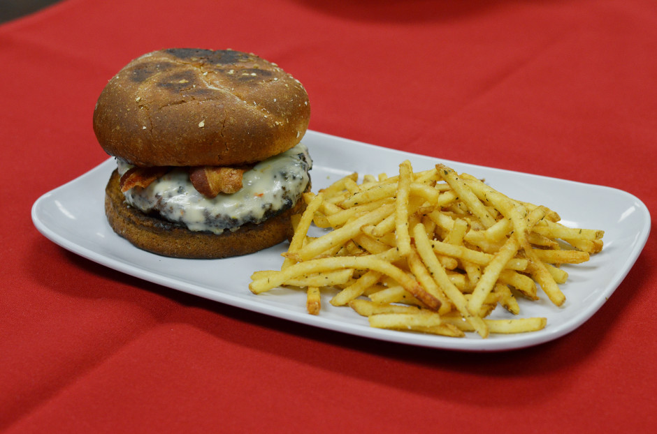 Actually, while you are correct about advanced foods, food service 1 isn’t actually working in Barron’s- they are learning knife skills and how to use different aspects of the kitchen. Food and Bevarage service (HRMA 2220) works in Barron’s. As for the food, from left to right, those are fried carrot sticks with jalepeno ranch, Jivin’ Jason Burger (burger with bacon, pepperjack, and jalepeno ranch), BBQ chicken pizza, and creamy chicken pasta.