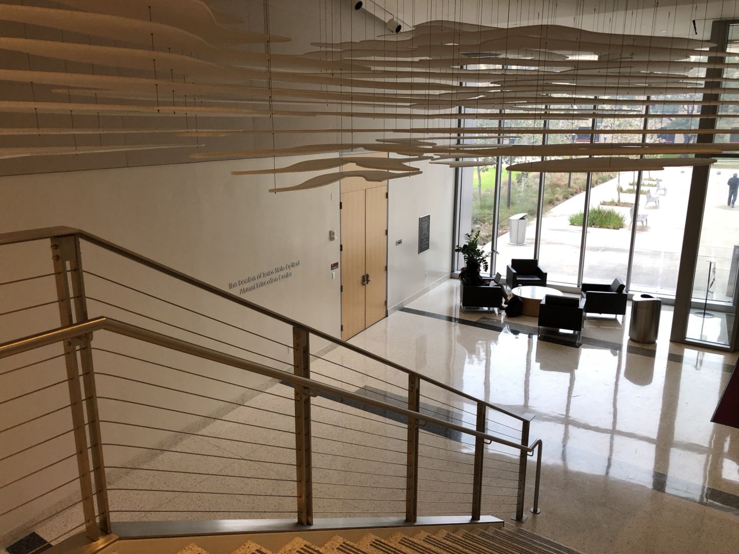 The Fine Arts Building is built around a large, open atrium with benches to sit and read your favorite book or soak up the sun. Art students’ constantly rotating public projects add some visual interest, too. | Thomas Dwyer/The Cougar