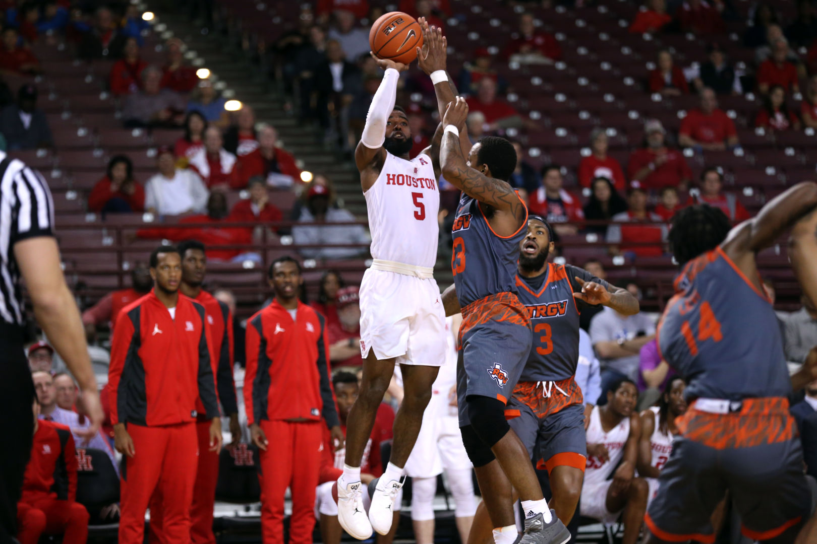 Houston closed out its stay at TSU’s H&PE Arena with a 19-game win streak by beating UT Rio Grande Valley. After not scoring at all in the first half, senior Corey Davis Jr. scored 23 in the second half to help the Cougars win 58-53. | Mikol Kindle Jr./The TSU Herald
