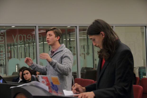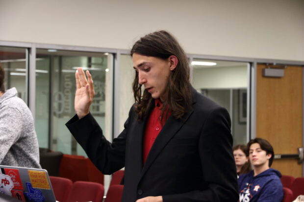 Student Government Association’s 60th administration President Benjamin Rizk and author of The New SGA Act swore under oath before his defense arguments.| Emma Christensen/The Cougar