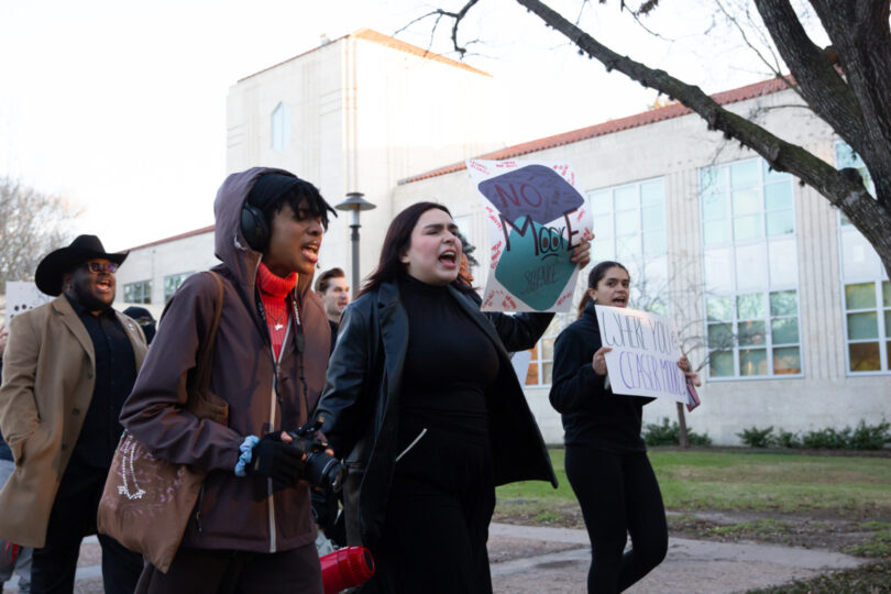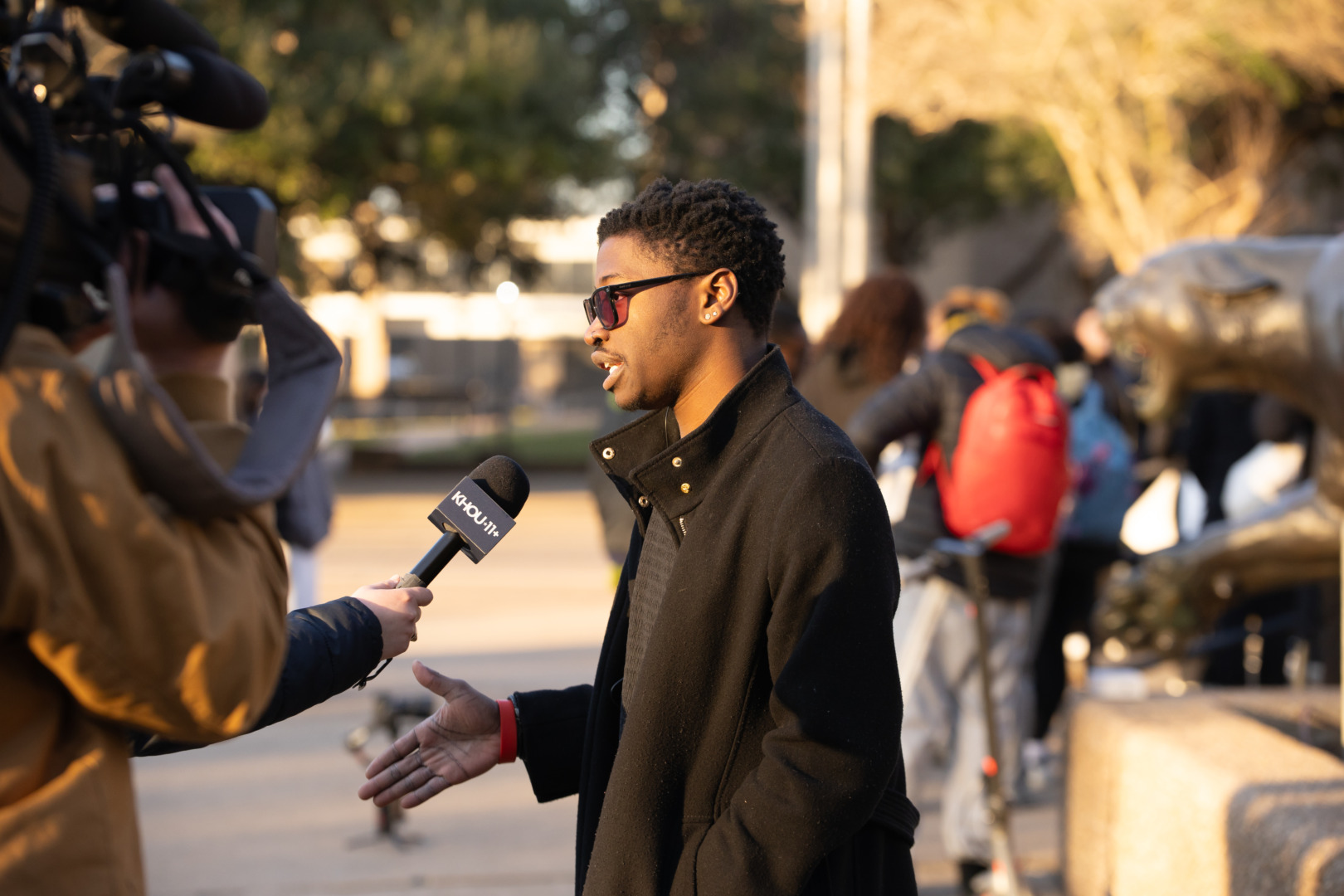 The protest caught the attention of not only students on campus but also local news stations KHOU11 and FOX 26 Houston, which covered the event.