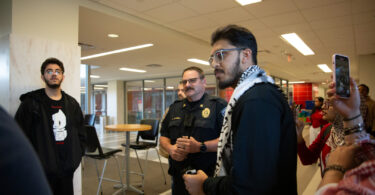 “Based on today’s interactions, I felt like it was very peaceful and positive for the most part,” said UH alum and legal observer Sara Milene Geiger. “It’s definitely coming across that the University doesn’t want SJP to be vocal.”