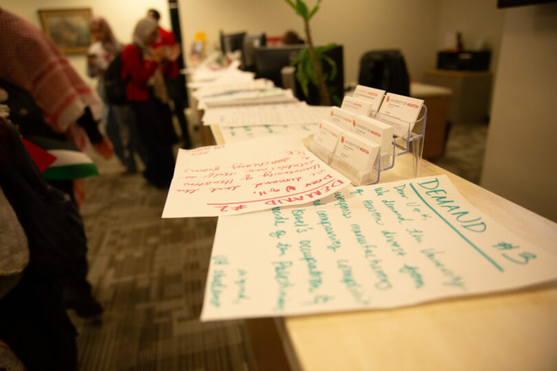 They want the University divest from weapon manufacturers and companies complicit in Israel’s occupation and genocide of the Palestinians, and to establish itself as a sanctuary from I.C.E.