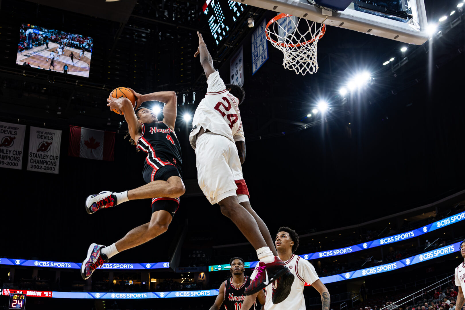 In a high-ranked matchup between the No. 8 Houston Cougars and the No. 14 Arkansas Razorbacks, Houston came on top 94-85 in the Prudential Center on Saturday, Dec. 20. Houston dominated with pressure, poise, and excellent scoring to keep Arkansas at bay in this top-15 showdown.