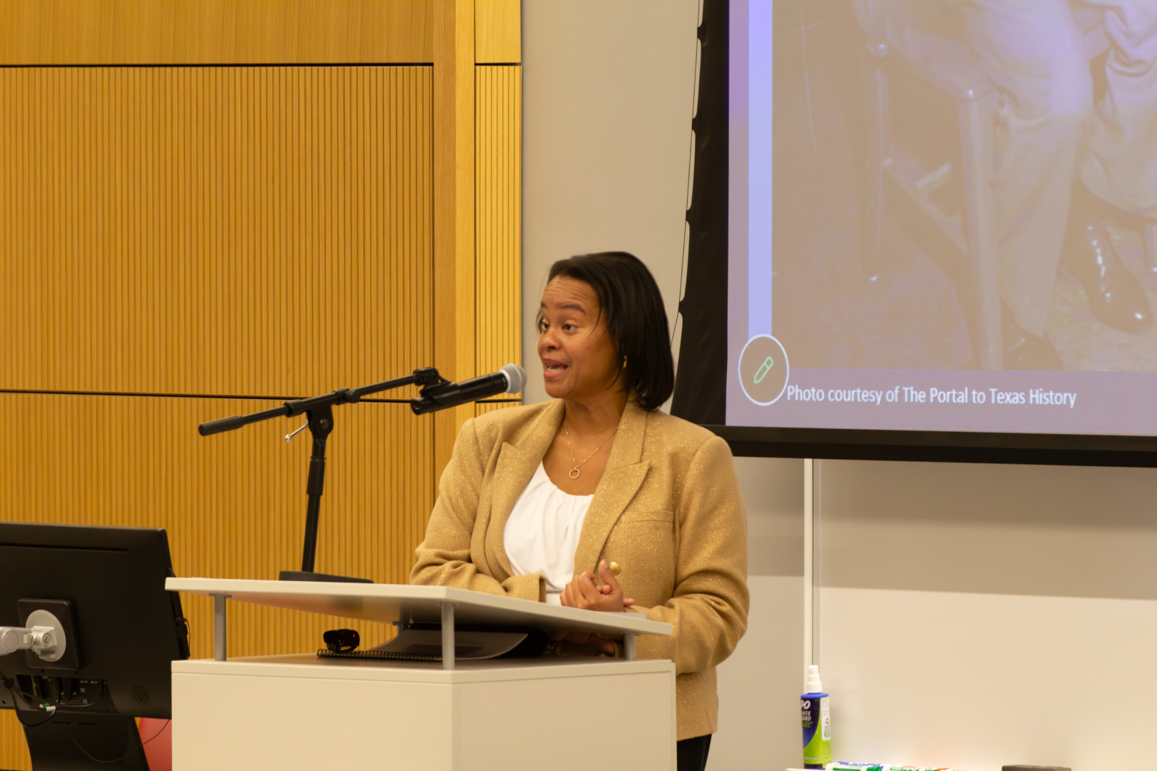 Danielle Holley speaking in the UH Black History Month lecture at the John M. O’Quinn Law Building, Tuesday, February 10, 2026, in Houston, Texas | Luis Diego Gonzalez/The Cougar