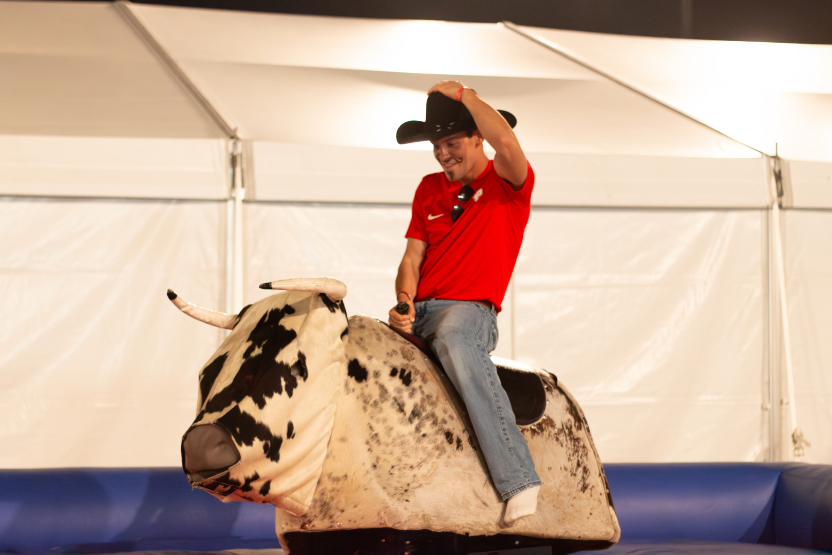 Students riding the mechanical bull at Frontier Fiesta, Friday, April 17, 2026, in Houston, Texas. | Luis Diego Gonzalez/The Cougar