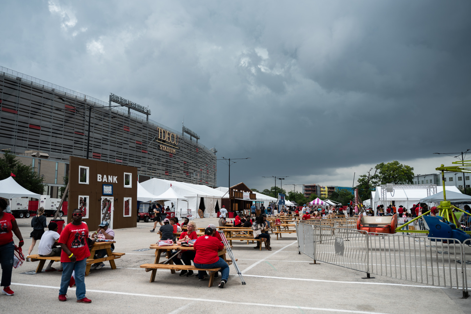 Storm clouds cover the sky on day 3 of Frontier Fiesta on Saturday, April 18, 2026, in Houston, Texas. | Gillian Wisniewski/The Cougar