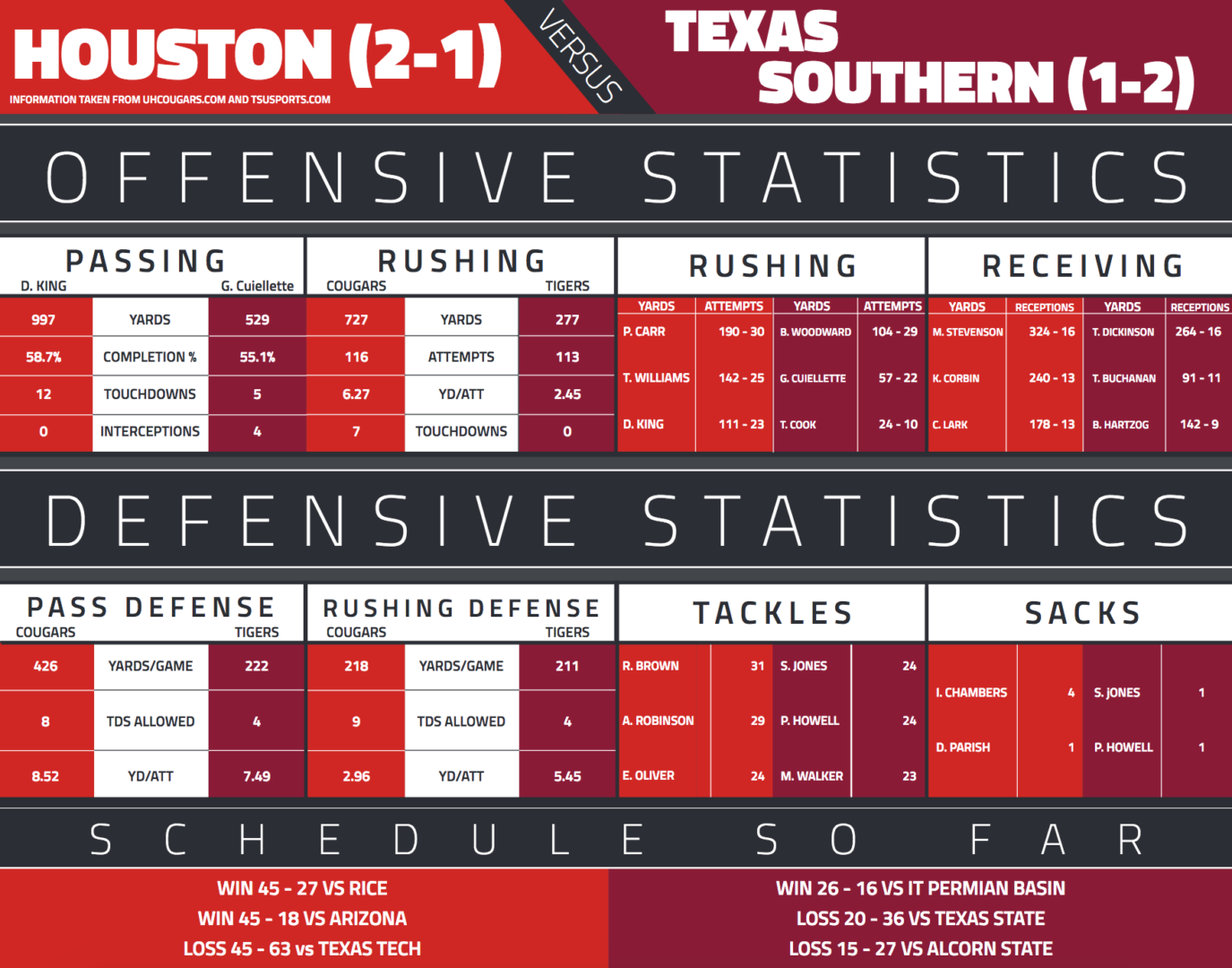 The Houston football team will be taking on Texas Southern at 7 p.m. Saturday at TDECU stadium as...