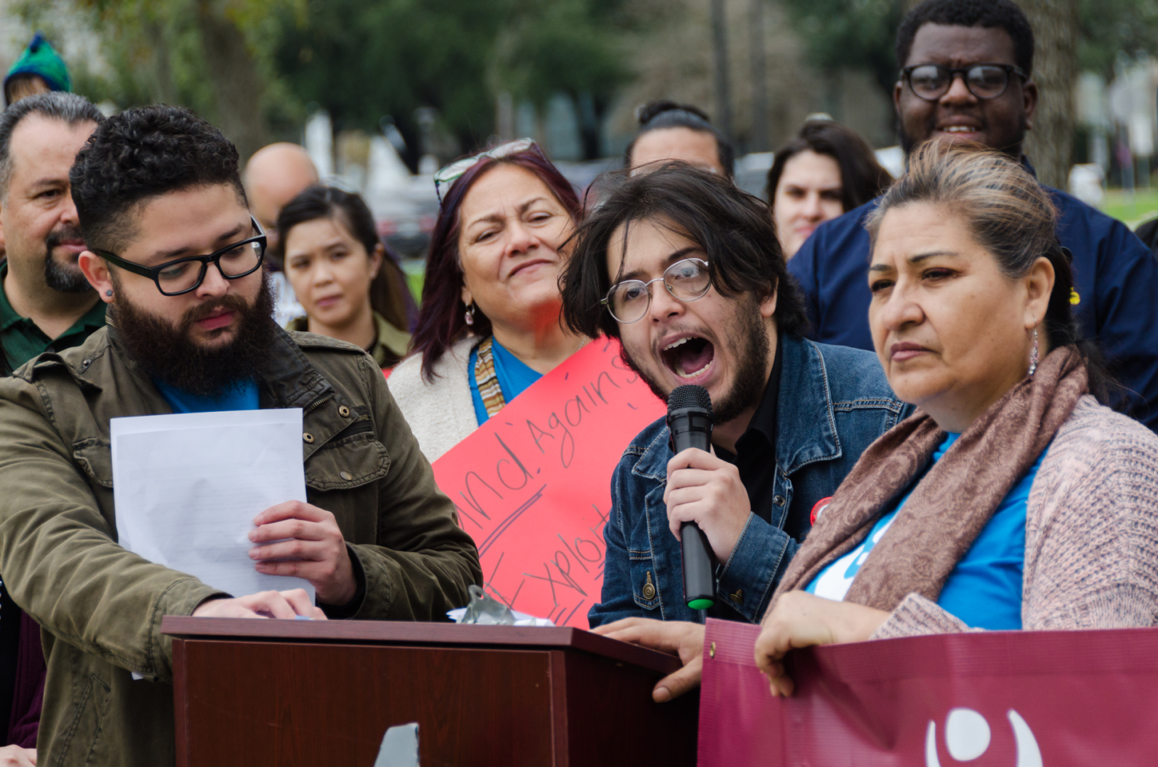 Workers on The Quad project protest for allegedly owed...